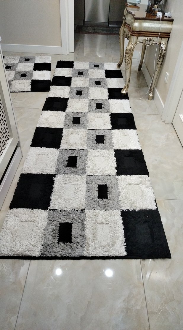 grı kareli Çağdaş Halı 3,20 *90 ikincisi 120* 90 2 adet yolluk