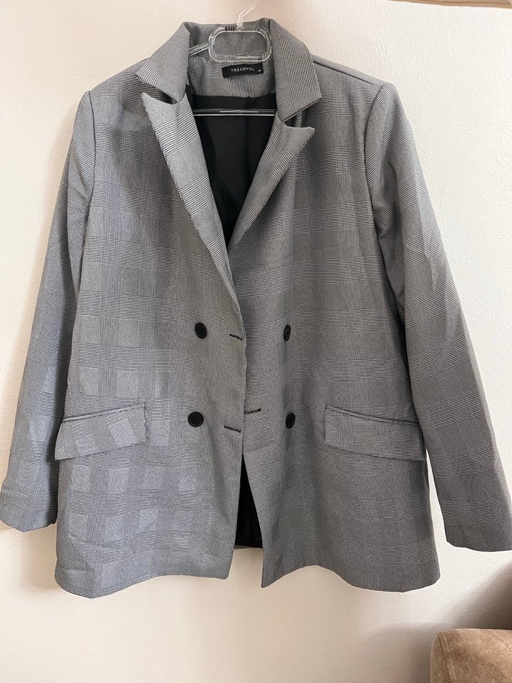 Gri Kareli Düğmeli Kadın Blazer Ceket