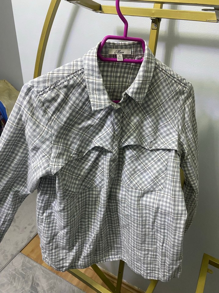 Düğmeli ön, uzun kollu ve yakalı bu kadın gömlek, yumuşak pamuktan üretilmiş. Geniş kesim ve midi boyuyla rahat, gri kareli deseniyle sade bir stil sunar. Çok rahat bir kumaşı var tek kelime ile efsane bir kaç kez kullandım .