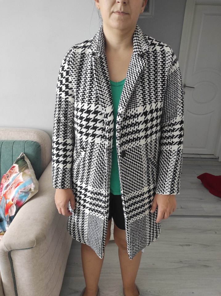 gri kareli, düğmeli, normal kesim, uzun kollu kadın midi kaban, günlük kullanıma uygundur. s beden m bedenede uygundur