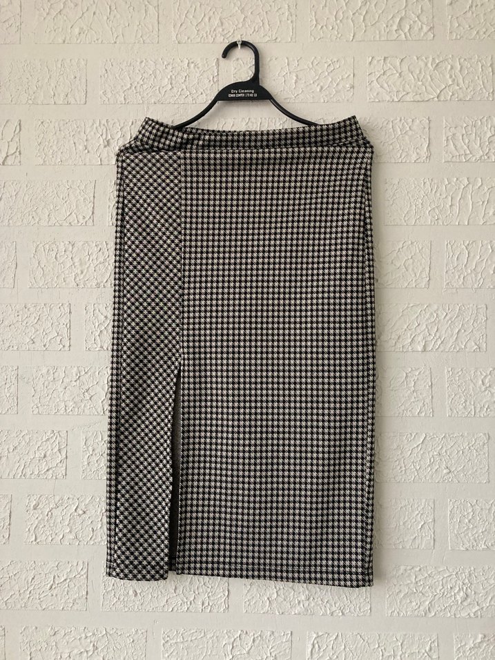 Gri kareli midi eteği, drapeli tasarımı ve normal kesimiyle yumuşak sentetik kumaştan üretilmiştir. Sokak modasına uygun şık bir parçadır.