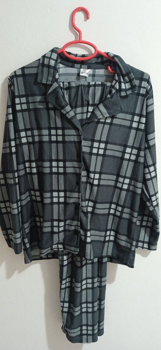 Gri Kareli Kadın Düğmeli Pijama Takımı