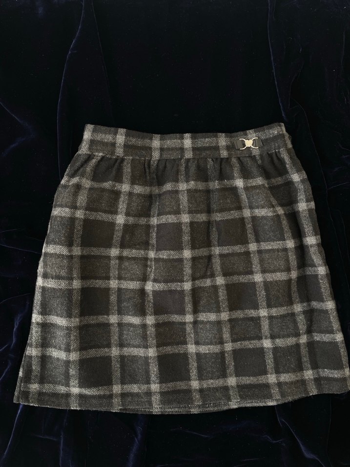 Gri kareli etek, bol kesim ve yumuşak dokusuyla rahatlık sunar.Beli lastikli 38-40 beden uyumlu teyzemin eteğiydi hiç giyemedim bana geniş olduğu için satışta çok güzel bir etek kışlık