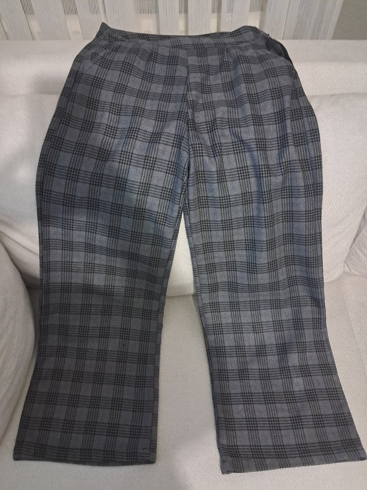 Gri kareli kadın kumaş pantolon, normal boy midi kesim ve yandan fermuarli