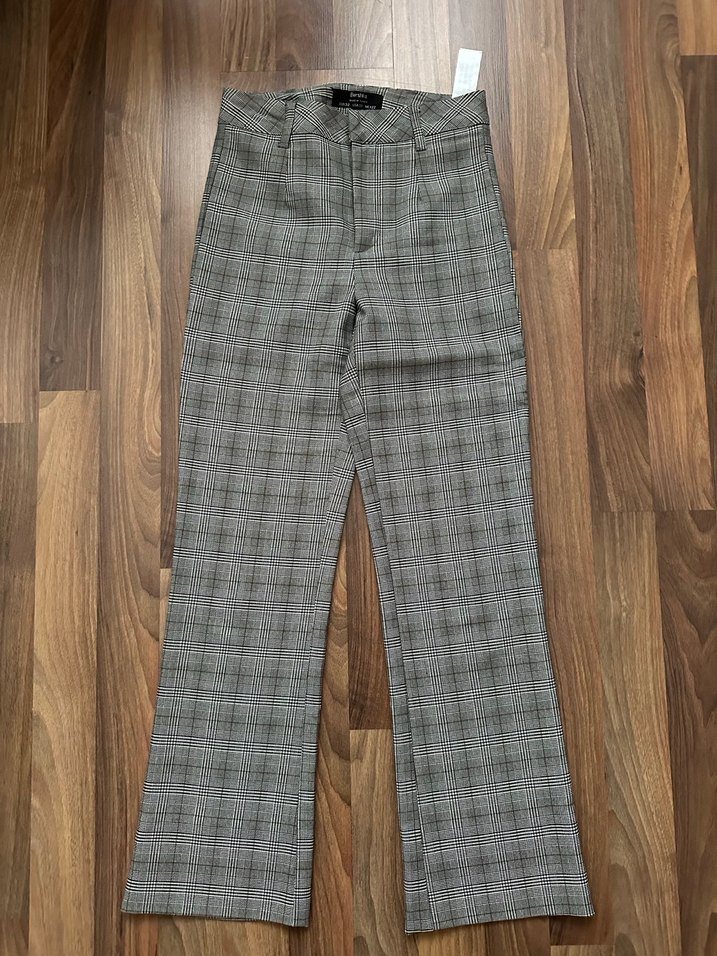 Gri kareli kadın kumaş pantolon. Normal midi boyda ofis ve iş tarzına uygun. Paçasında pay vardır boyunuza göre yaptırabilirsiniz