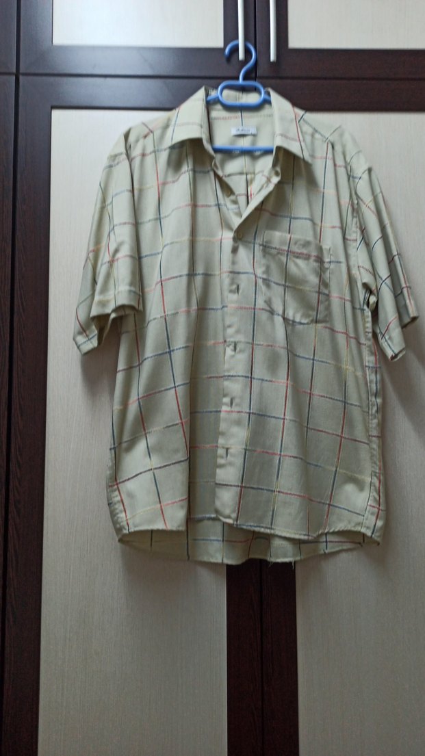 Gri kareli, kısa kollu, düğmeli erkek gömleği. Rahat kesimli ve yakalıdır, günlük sokak stili için uygundur.