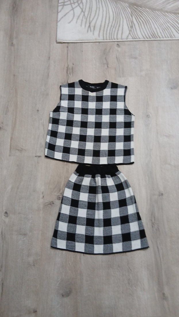 Gri Kareli Kolsuz Triko Mini ikili takım