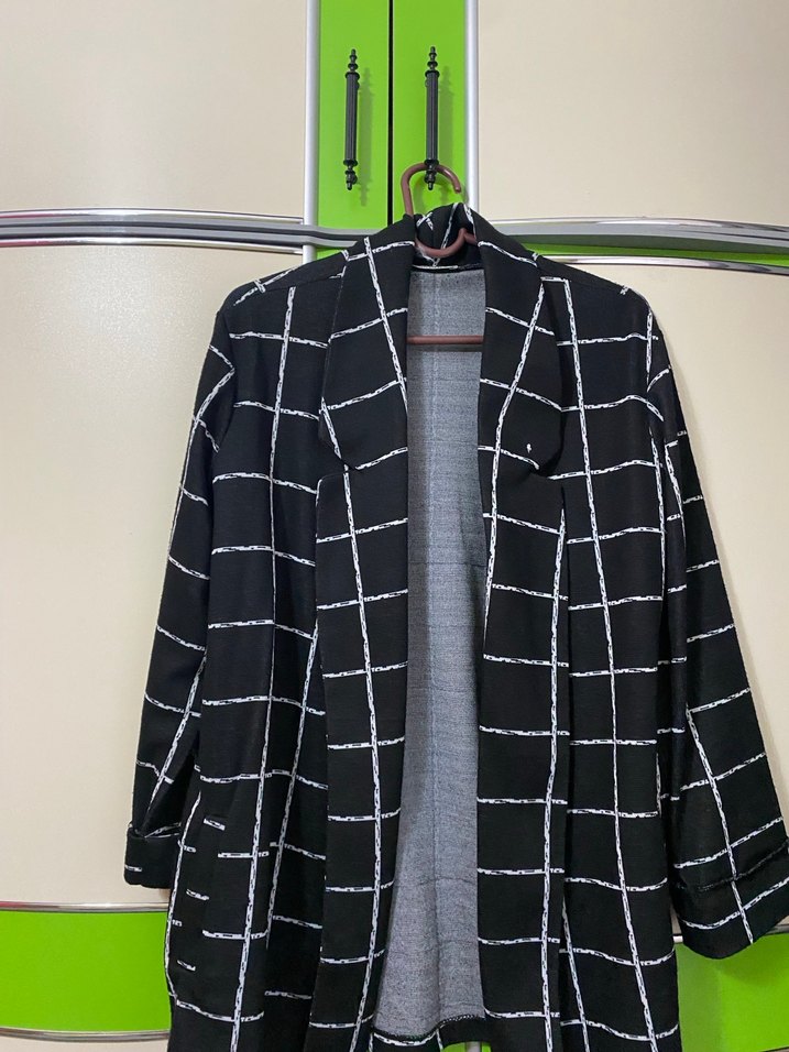 Gri kareli desende, düğmeli, regular fit midi uzunlukta kadın kaban. Notch yaka ve uzun kolludur, günlük sokak stili için uygundur. Bilindik marka değilidr.Kolları kısadır