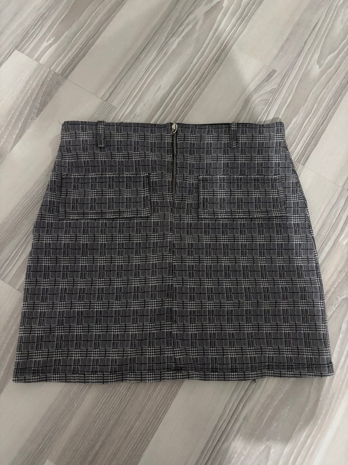 Gri Kareli Midi Kadın Mini Etek