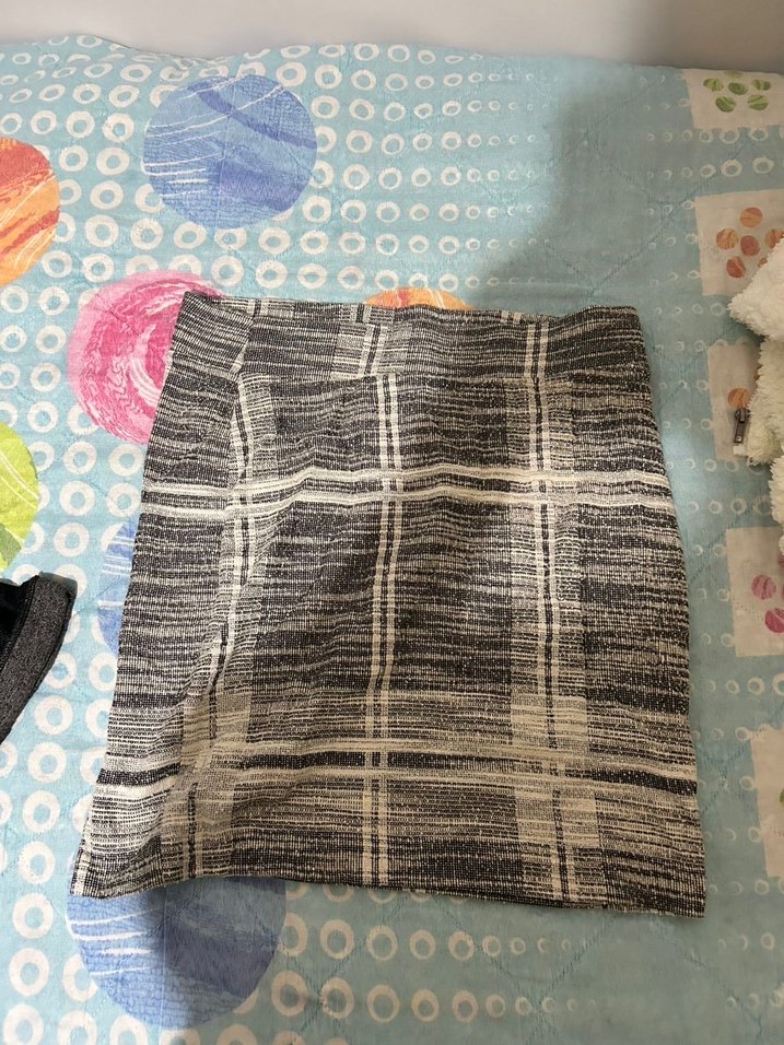 Gri kareli desenli, dokuma kumaştan yapılmış, pile detaylı ve vücuda oturan mini etek. Rahat ve retro tarzıyla günlük kullanım için uygundur.