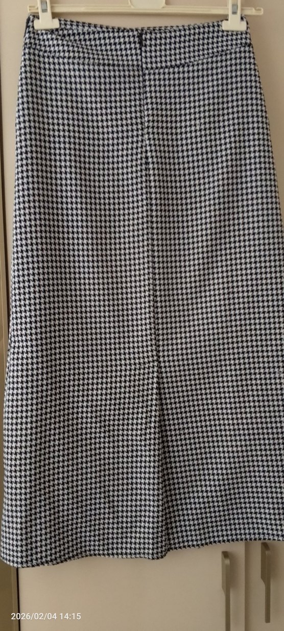 siyah kareli kumaştan, pilili ve normal kesime sahip kadın etek