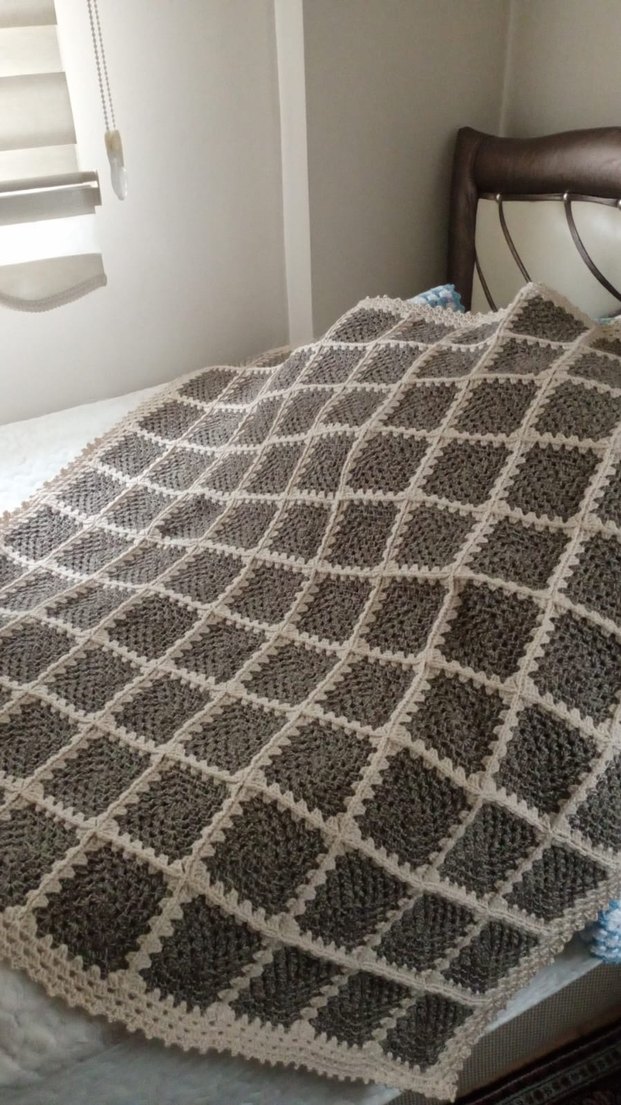 Gri tonlarında kareli desenli, sıcak ve dokulu kumaştan yapılmış battaniye. Yatakta konfor ve şıklık sağlar. ️