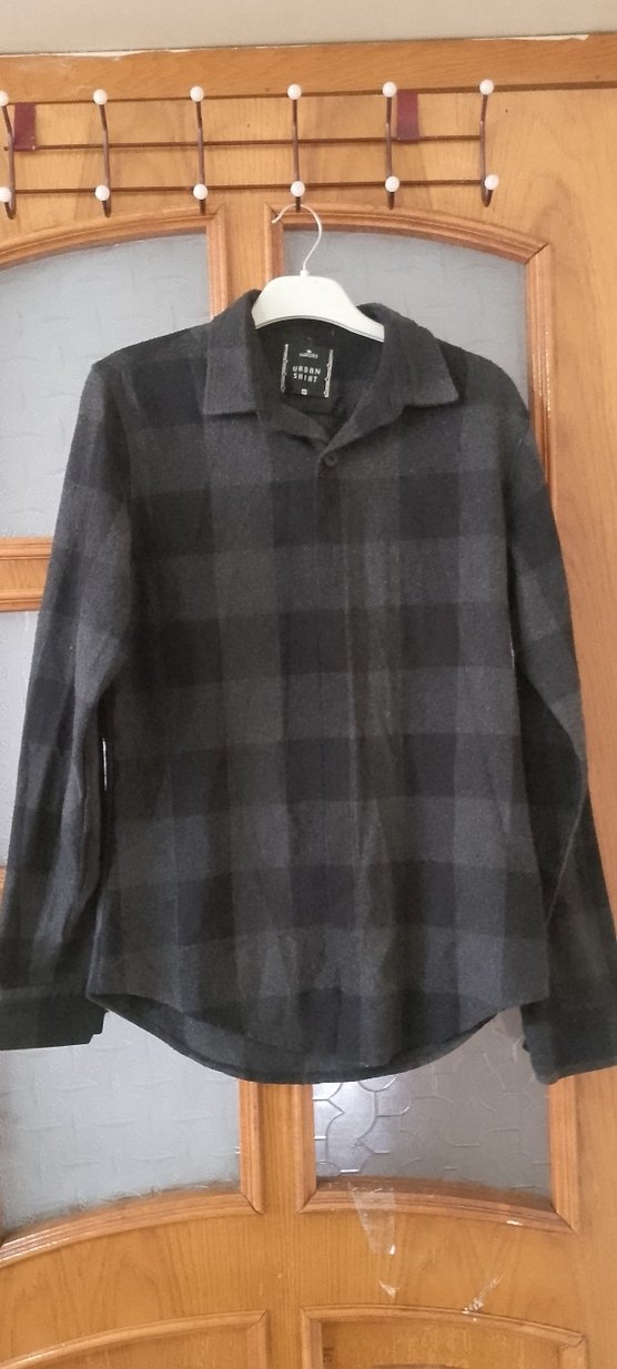 Gri kareli, uzun kollu erkek gömlek. Düğmeli ve yakalı, rahat kesim. Yumuşak ve sıcak kumaştan, gündelik sokak tarzı için uygun.