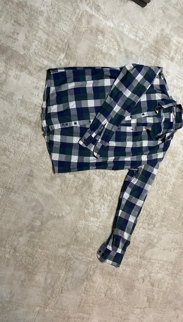 Gri ve koyu kareli desenli, yakalı ve düğmeli erkek pijama üstü. Uzun kollu, regular fit, rahat sokak tarzı. ️