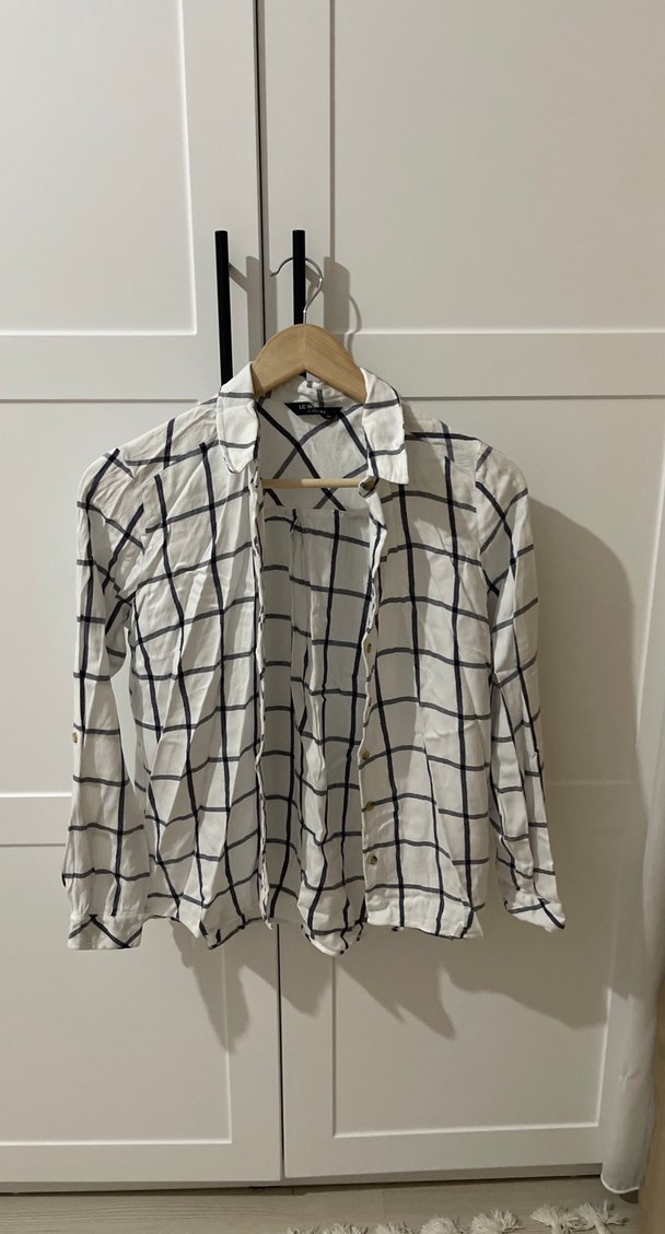 Gri Kareli Uzun Kollu Kadın Gömlek