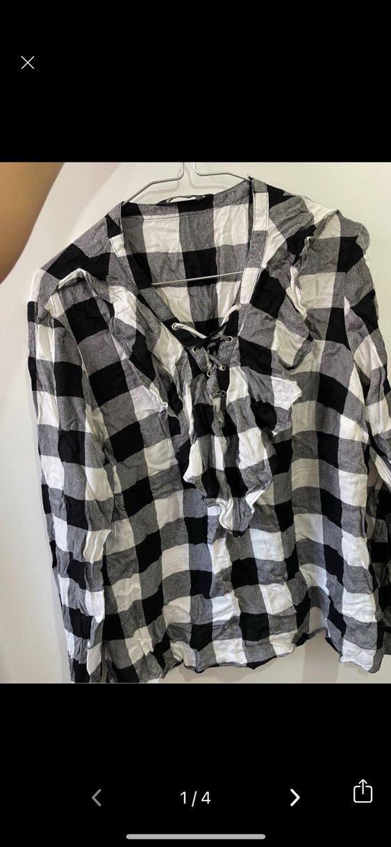 Gri kareli, uzun kollu pamuklu gömlek, yakalı ve düğmeli ön detaylara sahiptir. Rahat ve bol kesimiyle günlük kullanım için uygundur.