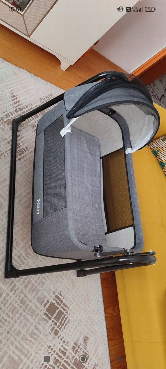 Gri renkli, katlanabilir tasarıma sahip bebek sepeti, sağlam iskelet ve hava alabilen file yan paneller içerir. Rahat ve güvenli ortam sağlar. ️