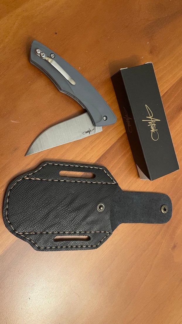 (KILIF HEDİYELİ )Gri katlanabilir bıçak, sağlam bir bıçağa ve güvenli taşıma için siyah deri kılıfa sahiptir. Kolay takma için klips içerir.