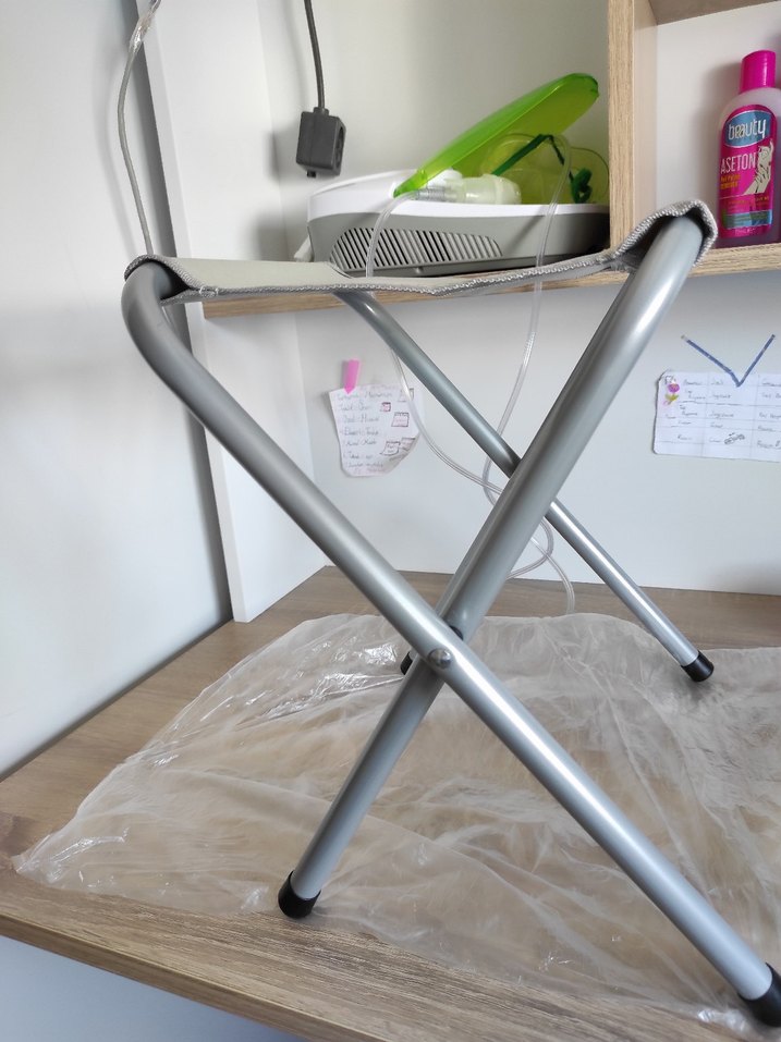 Gri renkte, katlanabilir dört lü kamp tabure hiç kullanılmadı ambalajları çıkarılmadı
