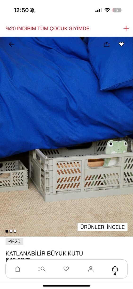 Dayanıklı malzemeden gri katlanabilir saklama kutusu, yatağın altı veya küçük alanlar için idealdir. ️4 adet gri renk
