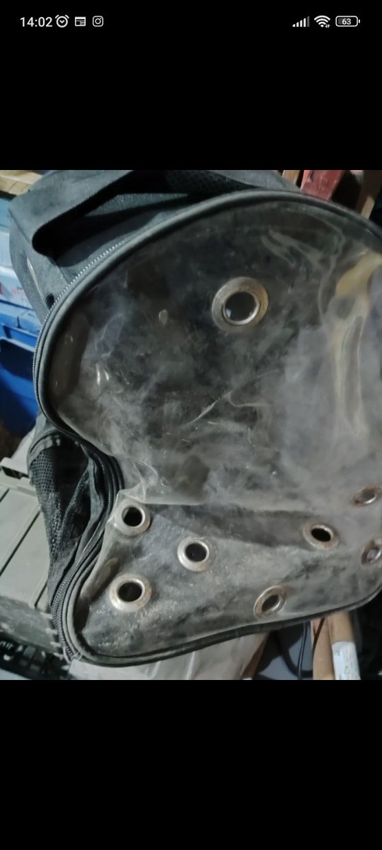 Gri kauçuk malzemeden yapılmış, kemerli ve metal halka detaylı biker tarzı taşıma kabı. ️