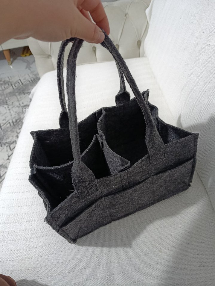 Gri renkli, çok bölmeli bebek çantası organizeri. keçeden üretilmiştir hiç kullanılmadı renk solması yırtık vs yoktur her şey sağlam cırtcırtlı iç bölmesi kendinize göre ayarlanabilir.