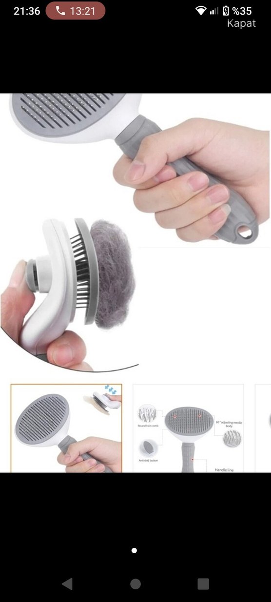Ergonomik saplı, gri renkli kedi-köpek tüyü toplama fırçası. Kolay temizlik için kendi kendini temizleme özelliğine sahiptir.