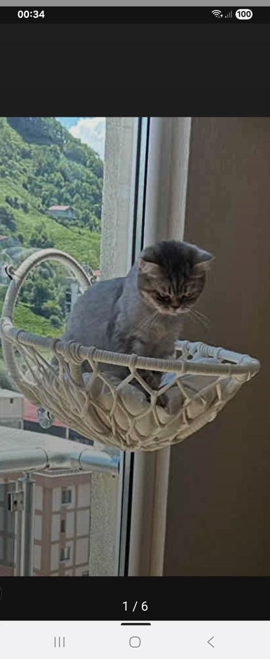 Gri renkli, dokuma tasarımlı kedi penceresi sepeti. Konforlu dinlenme ve dışarıyı izleme imkanı sunar. Cam yüzeylere kolayca tutturulur.