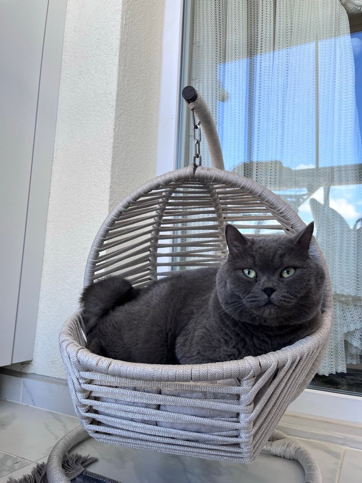 Örgü malzemeden yapılmış gri kedi salıncağı, kediler için rahat bir dinlenme alanı sunar. Dayanıklı, kavisli askı çerçevesi bulunur.