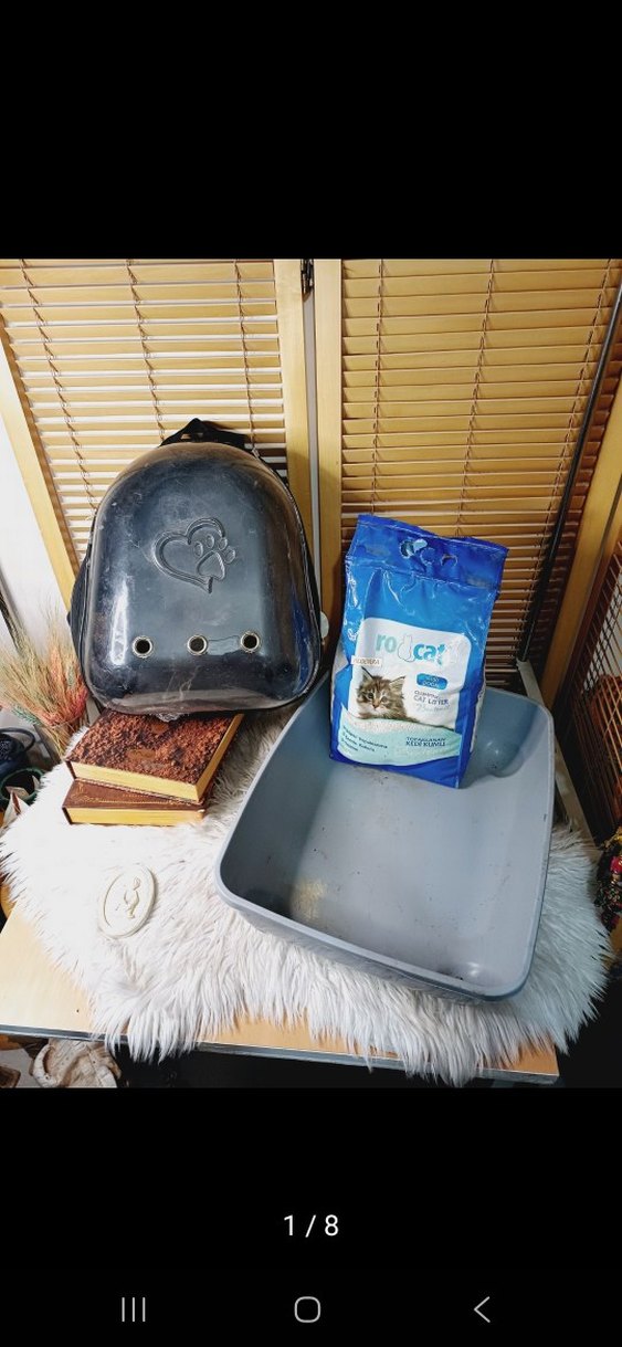 Gri Kedi Taşıma Çantası ve Kedi Kumu Kabı