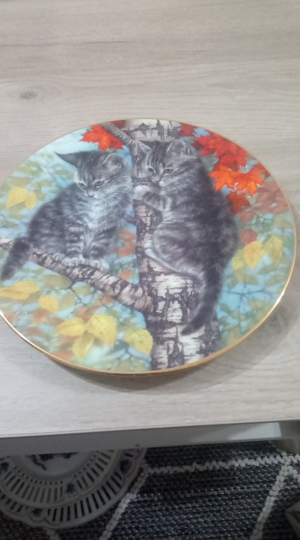Gri tonlarında iki kedi ve renkli yaprakların bulunduğu dekoratif tabak, kedi aksesuarı olarak kullanılır. ROYAL DOULTON BU FİYAT KAÇMAZ 20 CM YURTDIŞI ÜRÜNÜ
