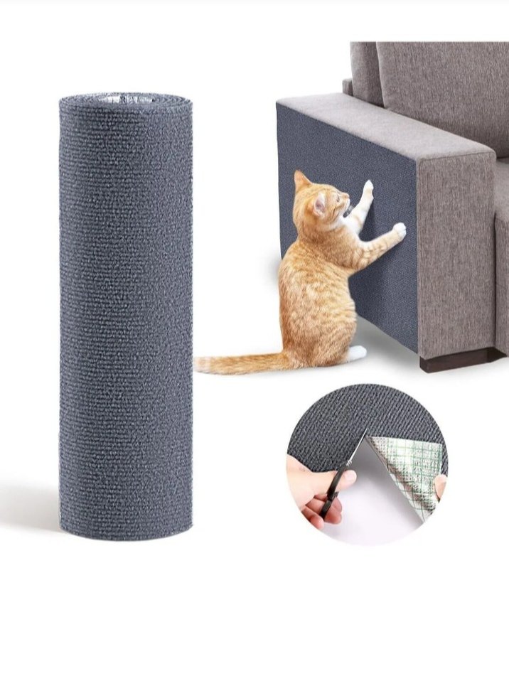 Gri renkli, mobilya koruma amaçlı kedi tırmalama koruyucusu. Kesilip kolayca uygulanabilir, tırnak zararını önler.