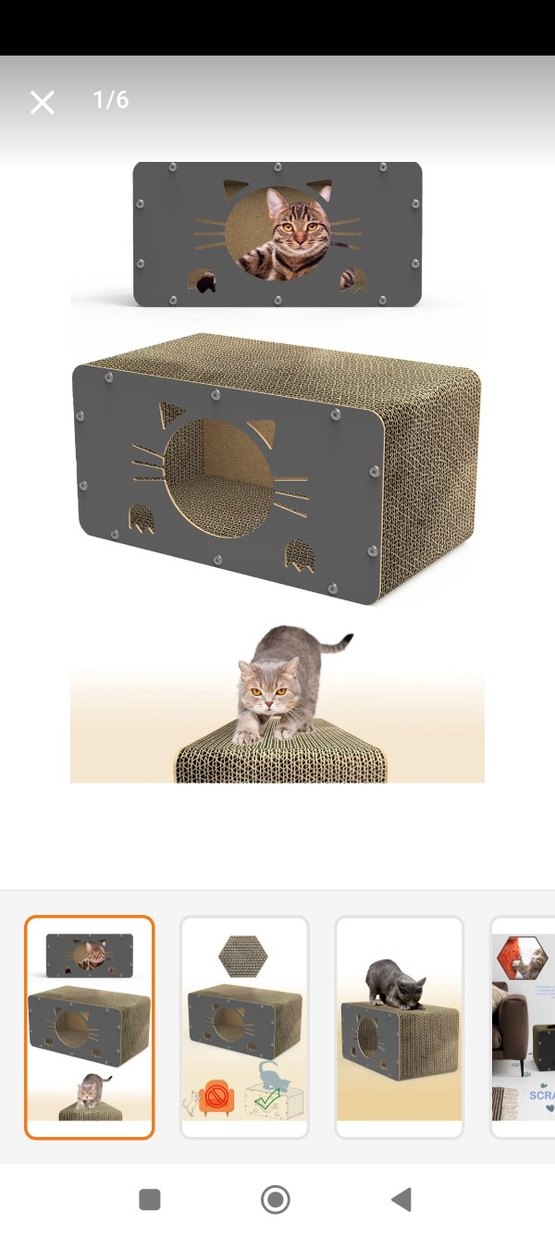 Kedi şeklinde girişe sahip gri tırmalama kutusu. Sağlam kartondan üretilmiş, kedilerin tırmalaması ve dinlenmesi için uygun. Kurduk ama kullanılmadı demonte gönderim yapıcam kurulumu kolay