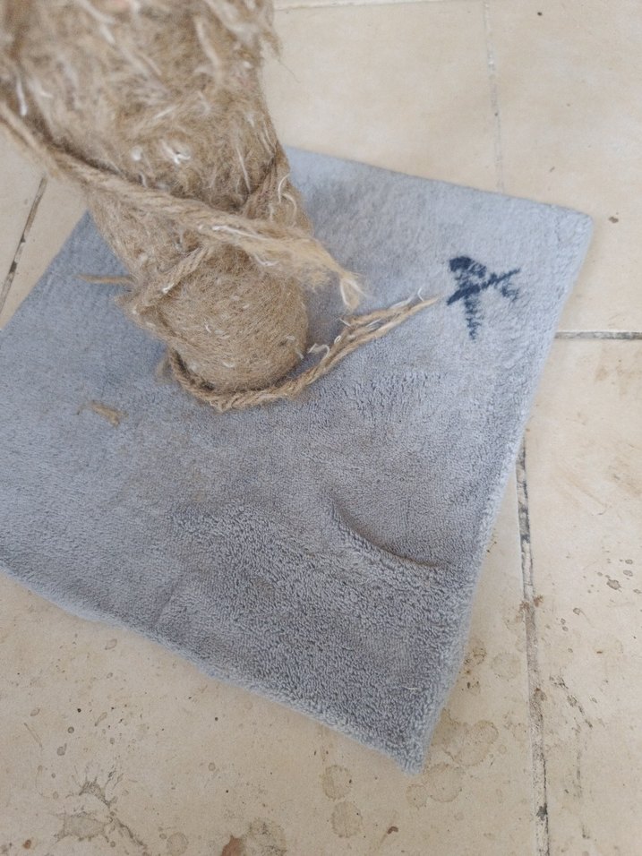 Yumuşak tabanlı ve sağlam jüt ipli gri kedi tırmalama tahtası, pençe bakımı için uygun .