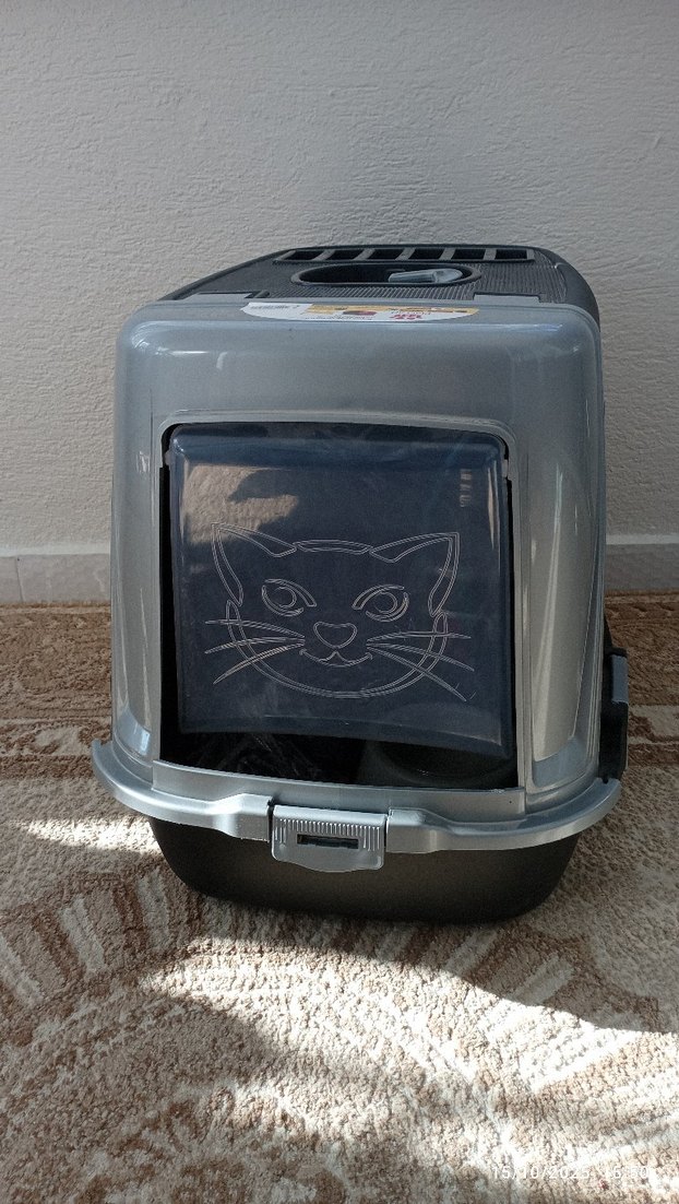 Ön kapakta kedi yüzü tasarımı bulunan gri kedi tuvalet kutusu. Temiz kullanılmıştır. Kırığı yoktur. Elden alabailecek olanlar yazsın lütfen.