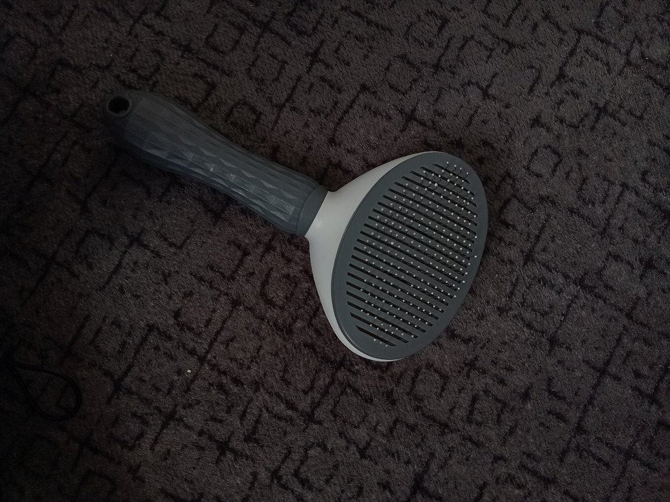 Tüyleri etkili şekilde temizleyen yumuşak kıllara sahip gri kedi tüyü fırçası.