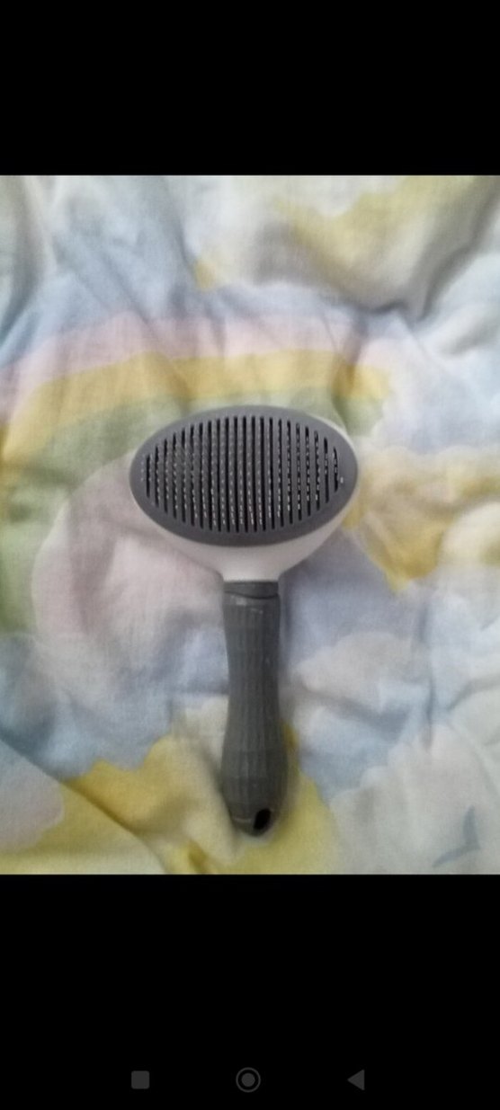 Gri renkte, rahat saplı ve ince kıllı kedi tüyü fırçası. kullanılmış