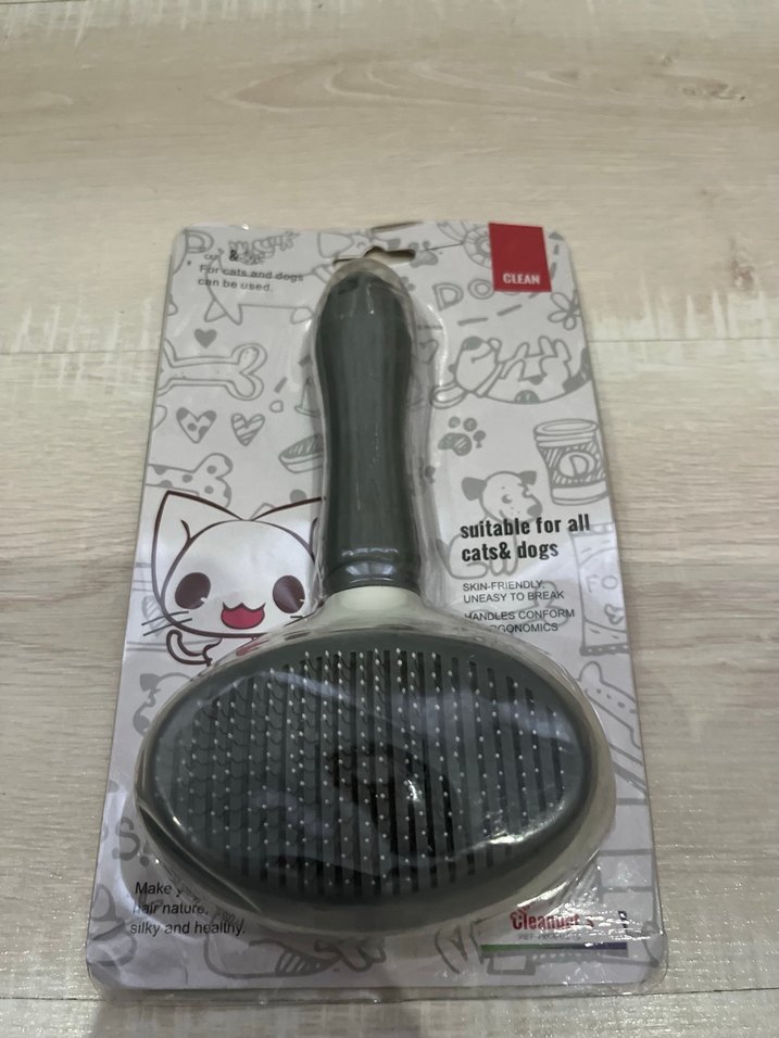 Gri renkte, tüm kedi ve köpekler için uygun tüy fırçası, tüy dökülmesini azaltır ve tüylerin sağlıklı kalmasına yardımcı olur.