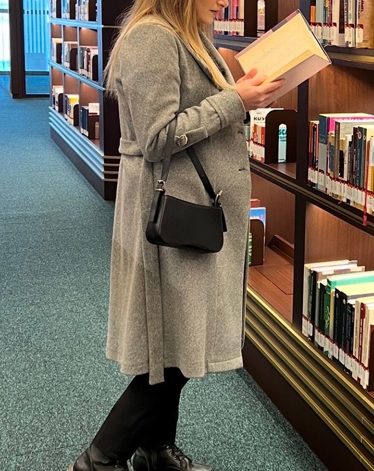Gri renkte, kemer detaylı uzun kaban. Yumuşak ve sıcak dokusu ile serin havalar için uygun, klasik kesim.
