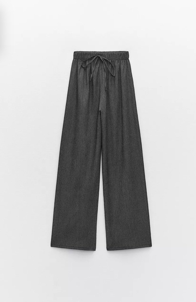 Gri renkte, kemerli ve bol kesim jean pantolon, rahat ve günlük kullanıma uygun midi boyda.