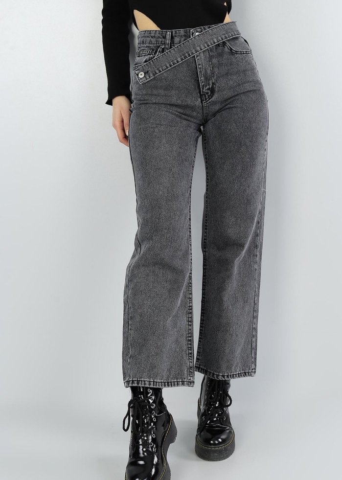 Gri renkte, bol kesim ve kemerli midi uzunlukta kot pantolon. Desensiz yapısıyla günlük sokak stiline uygundur. Hiç kullanılmamıştır etiket mevcut değildir.