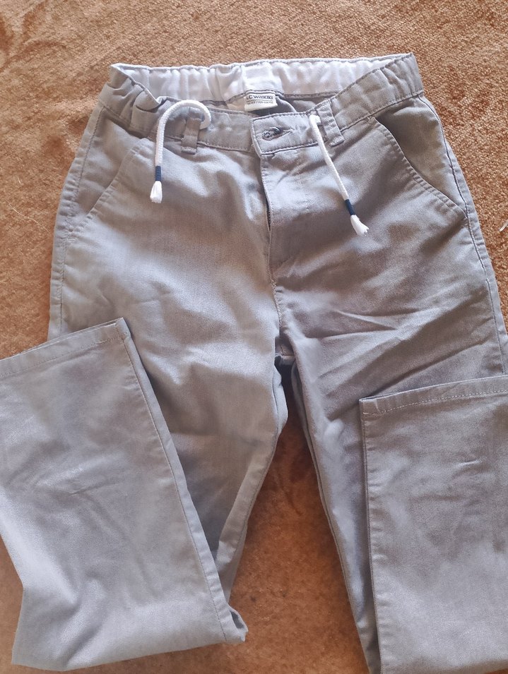 Gri keten kumaştan, kemerli ve regular fit erkek çocuk pantolonu. Trendy ve rahat sokak stiline uygun, desensiz tasarıma sahip.