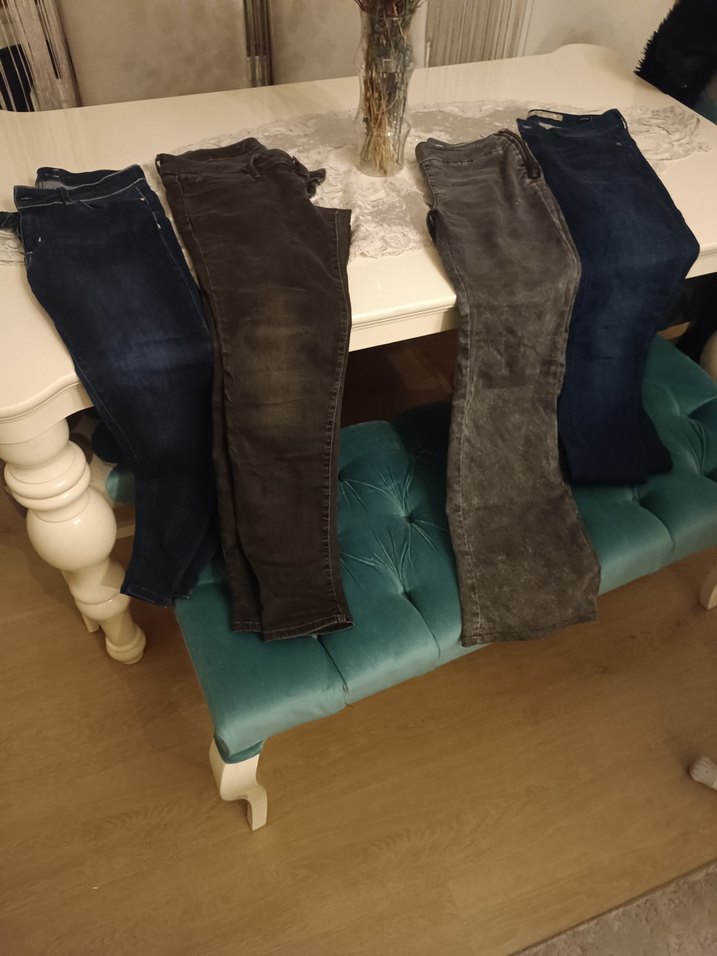 lacivert ve gri renk, normal boy midi uzunlukta, bohem tarzda kadın kot pantolon. Günlük rahat kullanım için uygundur.hepsi yer olmadığından uygun fiyatta satışta biri İspanyol paça diğerleri dar paça