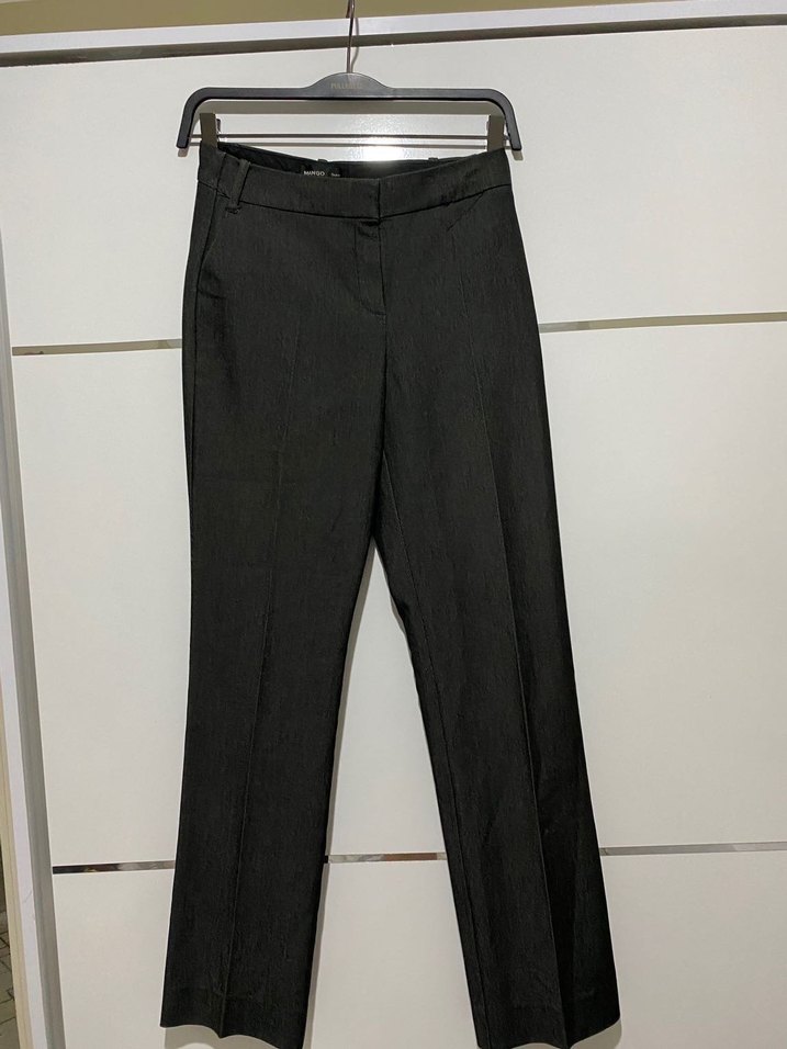 Gri renkte, kemerli, normal boy midi kadın kumaş pantolon. Ofis ve günlük iş tarzına uygundur.