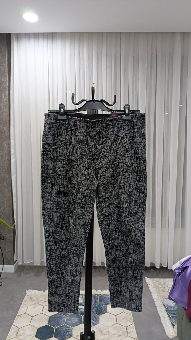 Gri renkli, kemerli ve regular fit kadın kumaş pantolon. Sentetik kumaştan üretilmiş, midi boyda, günlük ve sokak stiline uygun.