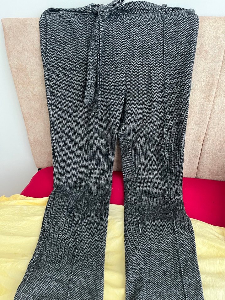 Gri renkli, kemerli ve vücuda oturan kadın kumaş pantolon. Midi boyda, yumuşak sentetik kumaştan rahat bir kullanım sunar. Günlük rahat sokak stili için uygundur.