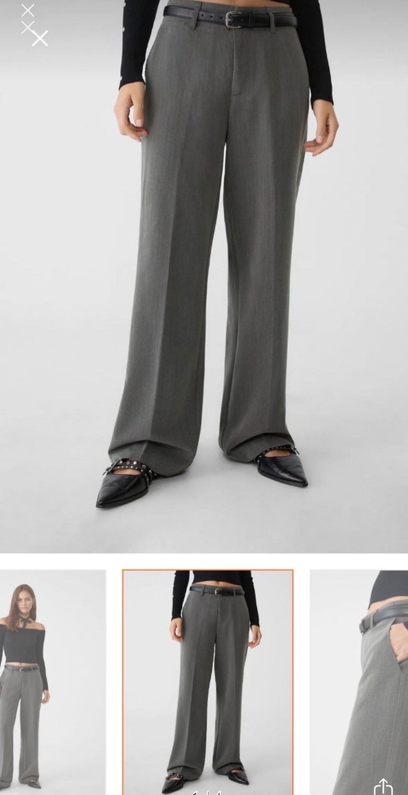 Gri kadın kumaş pantolon. Düzenli kesimi ve ince çizgili tasarımıyla ofis için uygundur