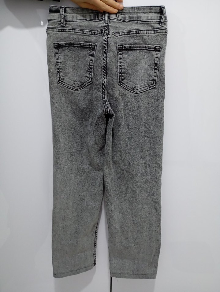 Gri renkte, kemerli, bol kesim ve midi boy kadın kot pantolon. Günlük rahat kullanıma uygundur.