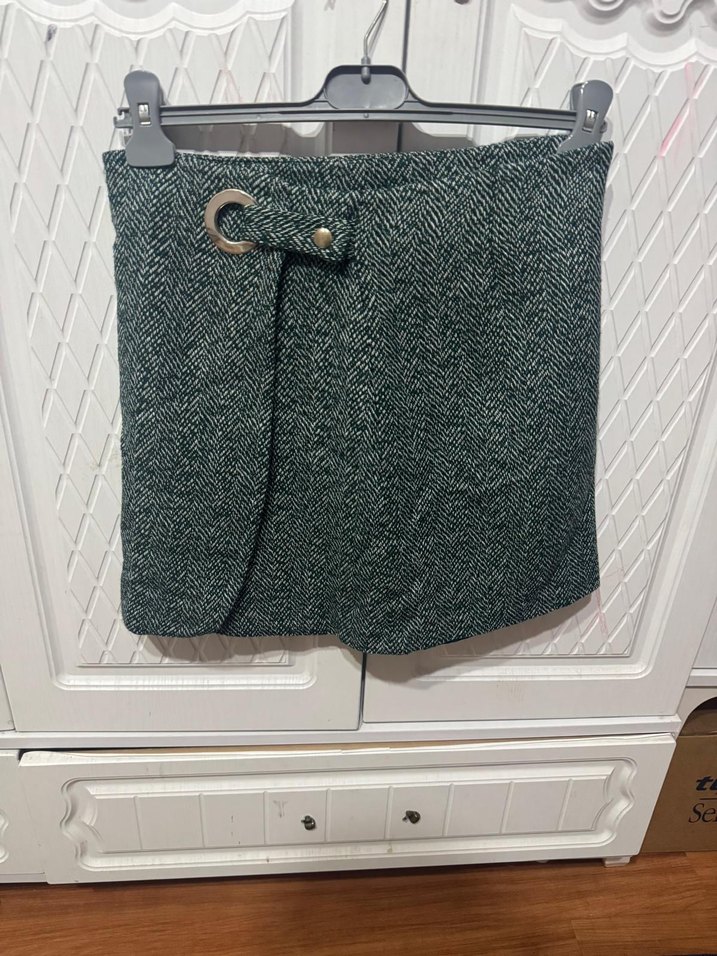 Gri Kemerli Kadın Mini Etek