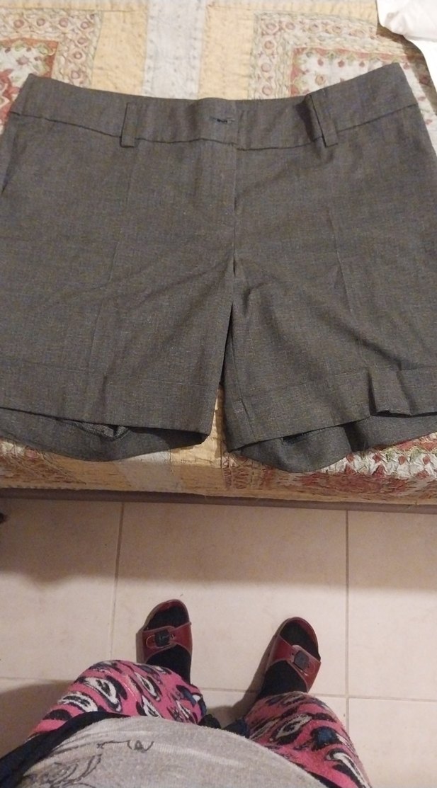 Gri renk, kemerli ve bol kesim kadın mini şort. Sentetik kumaştan üretilmiş, ofis için trend ve rahat bir tercih.